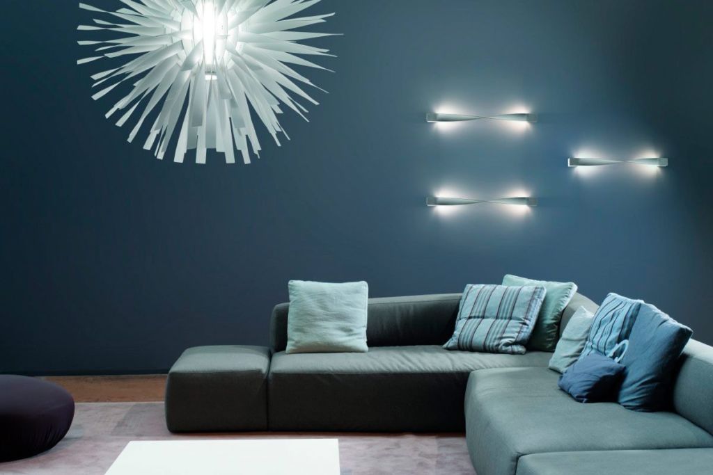Обычно бра размещаются над местами для отдыха, количество светильников и мощность встроенных в них ламп зависит от размеров комнаты. Если потолок невысокий, то направление света должно быть направлено вверх. Для разделенной зоны следует выбирать бра с ярким светом. Более тусклый свет можно выбрать для установки над диваном, чтобы он не слепил глаза.
