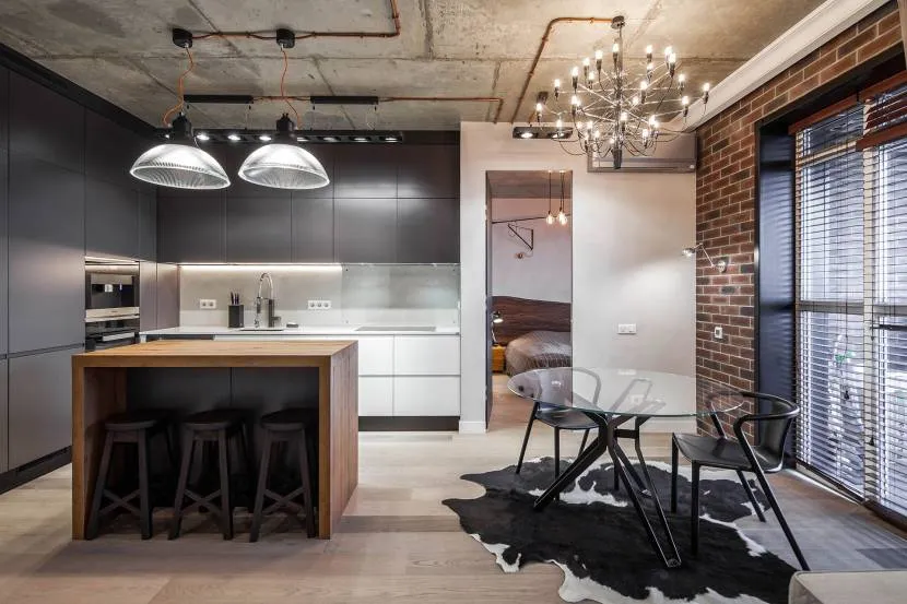 Рекомендуется организовать кухню-студию, в которой рабочая зона объединяется с гостиной. Иногда для этого можно просто убрать дверь и немного расшить проем. Именно для малогабаритных квартир дизайн в стиле лофт считается оптимальным вариантом оформления и очень популярен как среди дизайнеров, так и среди владельцев помещений.