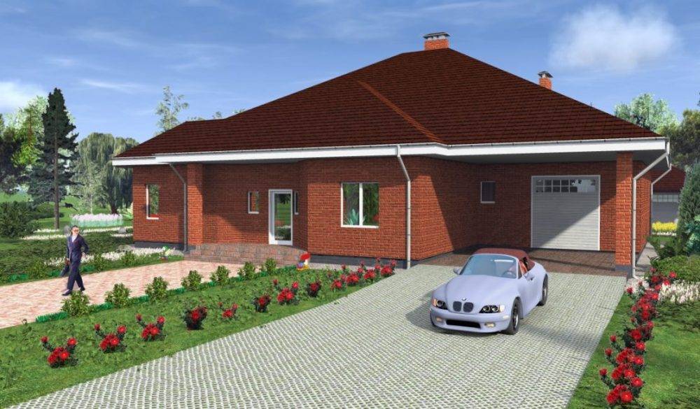 Одноэтажный кирпичный дом в виде буквы Г — высокая стоимость квадратного метра, но очень уютно во дворе