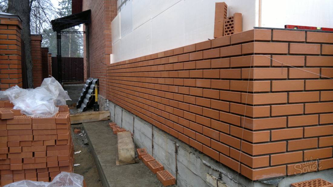 После проведения всех расчетов и закупки материала можно приступать к работам. Вначале подливают фундамент на требуемую ширину. Затем приступают к монтажу утеплительного слоя. В качестве утеплителя могут выступать плиты из минеральной ваты или пенопласт. Стыки между пенопластом пропенивают монтажной пеной. К несущим стенам утеплитель крепится с помощью специальных анкеров, которые одновременно служат и связующим звеном между стеной и облицовочной кладкой. Поверх утеплителя необходимо закрепить пароизоляционную пленку, которая предотвратит конденсацию пара.