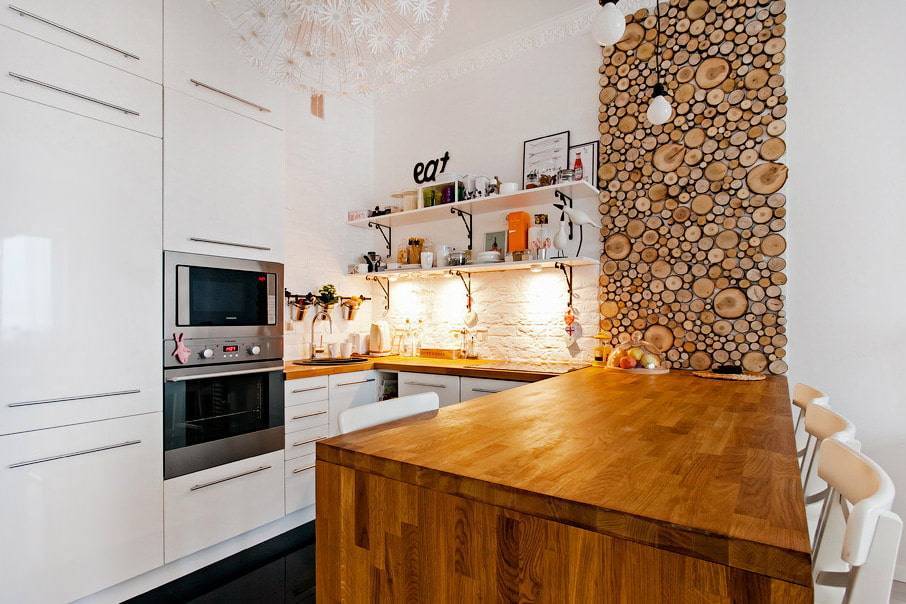 Как и всякий материал, дерево имеет изъяны, но современные технологии позволяют превратить весьма мягкий и капризный элемент декора в нечто действительно уникальное, сохранив при этом первозданный вид и уникальную, присущую только древесине, структуру. Из плюсов хотелось бы отметить: