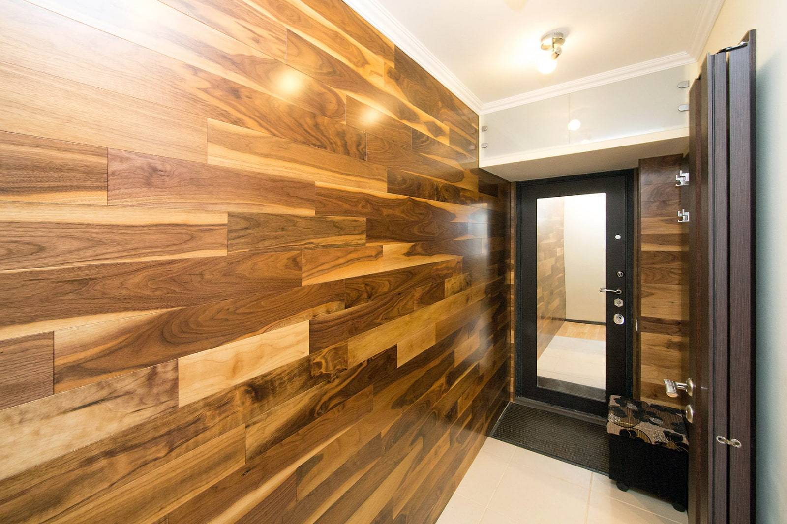Этот материал отличается хорошей устойчивостью и привлекательным внешним видом, часто используется для обшивки стен в городских квартирах.