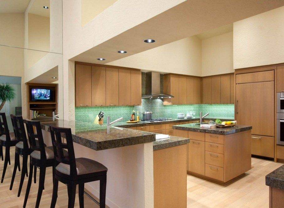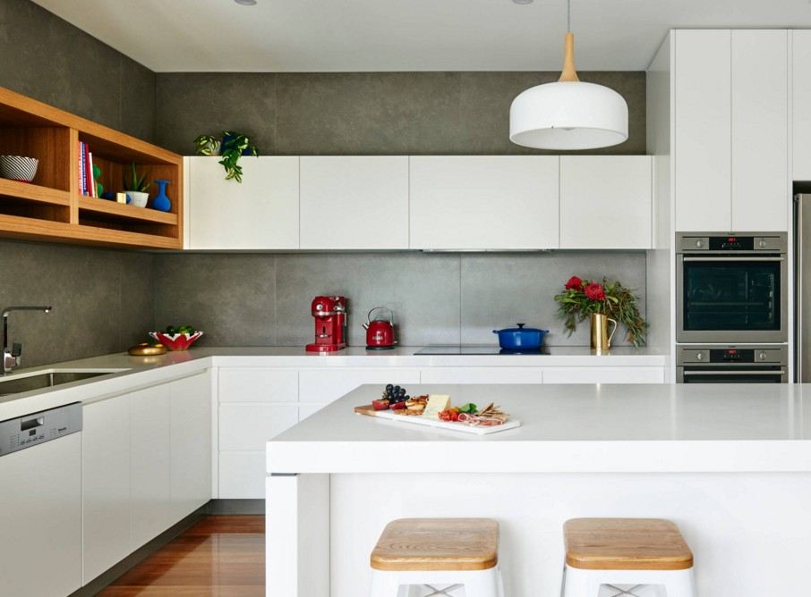 Широкий выбор размеров стеновых древесностружечных панелей для кухни позволяет проводить монтаж, как в вертикальном, так и в горизонтальном направлении на ограниченной площади. При монтаже в качестве фартука для рабочей зоны выбирают плиты, идентичные по цвету или контрастного оттенка. Часто проводят монтаж столешницы и панели из одинаковых плит.
