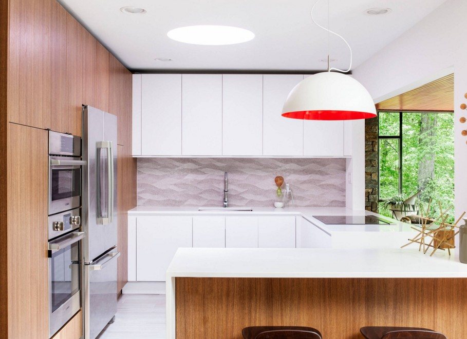 Это лучшая альтернатива скинали — стеклянному фартуку. По внешнему виду этот вариант более привлекателен. С этим материалом можно создавать интересные дизайны.