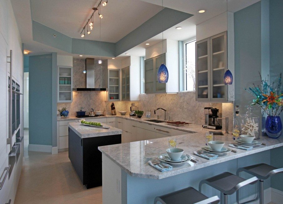 Неординарно выглядят кухни с отделкой панелями целых стен. Монтаж выполняют на специальные крепления в виде крюков. Листы, в зависимости от размера, могут иметь достаточно большой вес. Поэтому под крепление устанавливают металлический каркас.