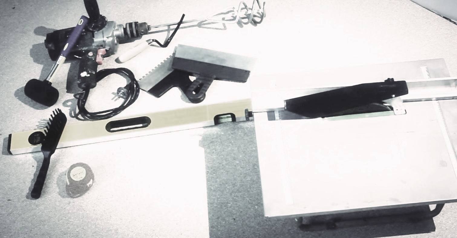 - смешать гипсовую штукатурку с плиточным клеем 1:1;