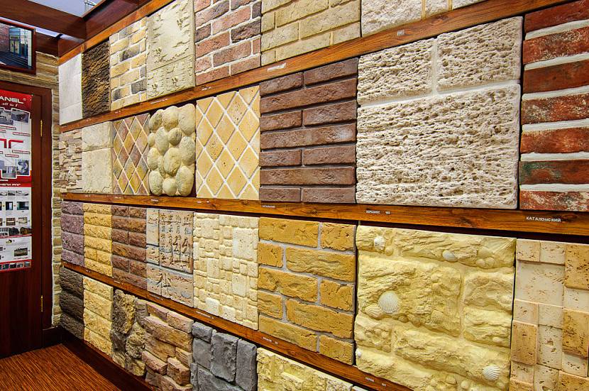 Для наружных работ обычно применяют бетонные камни, имитирующие натуральные покрытия. А для внутренней отделки рекомендуют выбирать гипсовые составы.