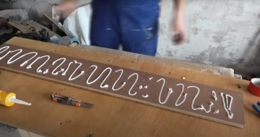 - Подрезанные элементы фиксируются на стену для завершения конструкции.