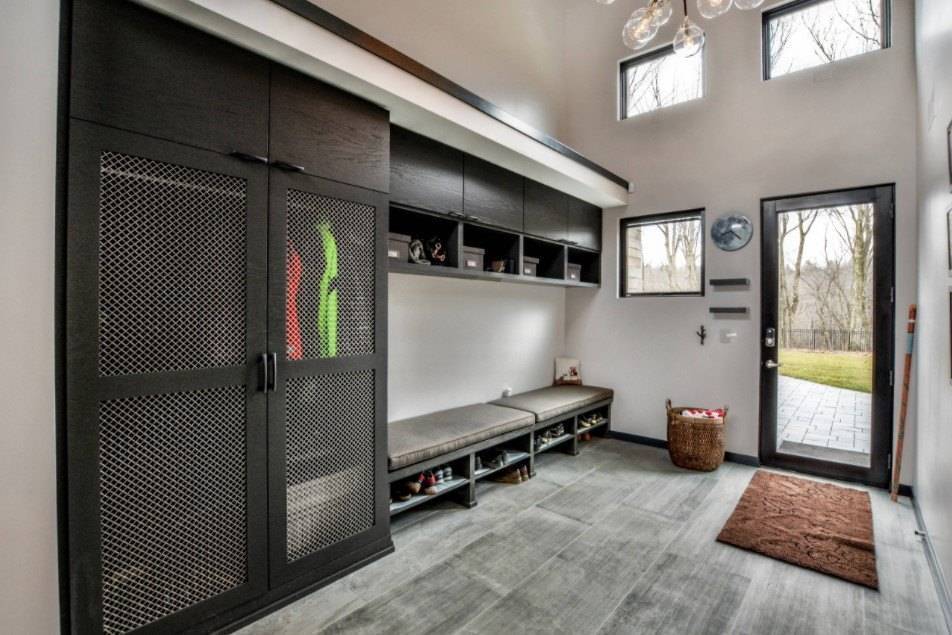- Грильято. Модули имеют вид металлических решеток. Подходят для некоторых дизайнерских прихожих, например, в индустриальном стиле или хай-тек.