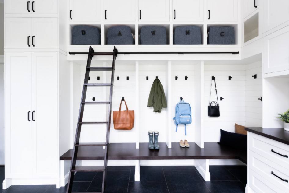 Если в вашей прихожей присутствует мебель вот такого плана, то обязательно акцентируйте на ней внимание при помощи грамотно реализованного освещения.Конкретно такой вариант черно-белого шкафа примечателен продуманностью конструкции и хорошей сочетаемостью с малогабаритными жилыми помещениями