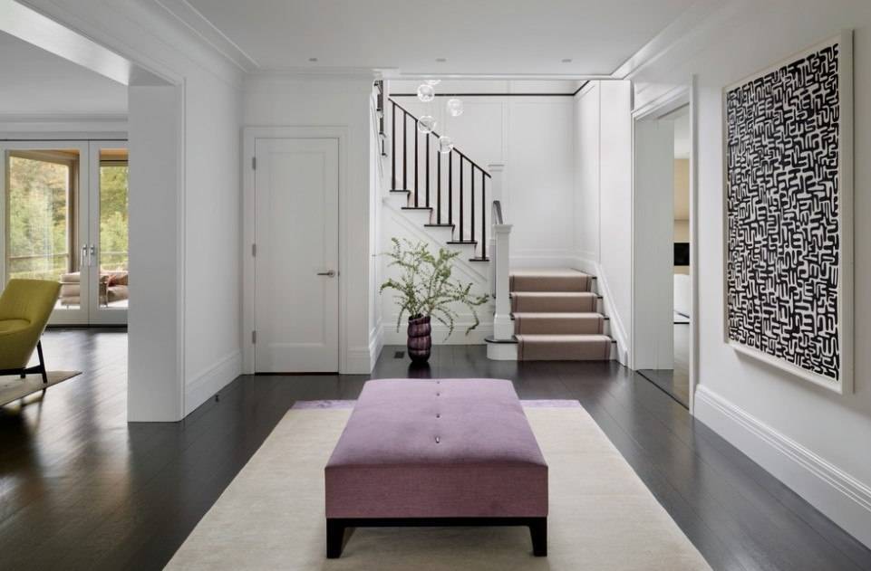 Если вы сосредоточены на том, чтобы свой крошечный узенький коридор выглядеть практически холлом, то проследите, чтобы напольное покрытие было несколько темнее фона стен, буквально на пару тонов. Можно поступить по-другому. Сделать пол в темном цвете и высветить его отдельные участки светлыми ковриками.