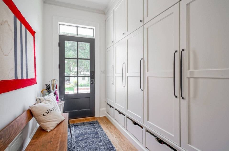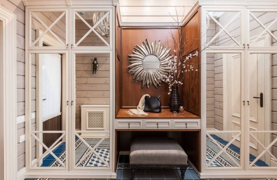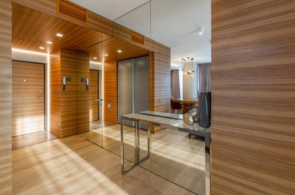 Если планировка прихожей позволяет разместить зеркальный шкаф-купе прямо напротив входной двери, обязательно используйте такую возможность.
