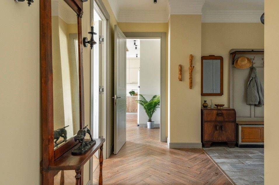 Выполнять отделку комнат и коридора рекомендуется в похожей цветовой гамме
