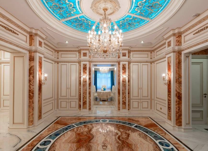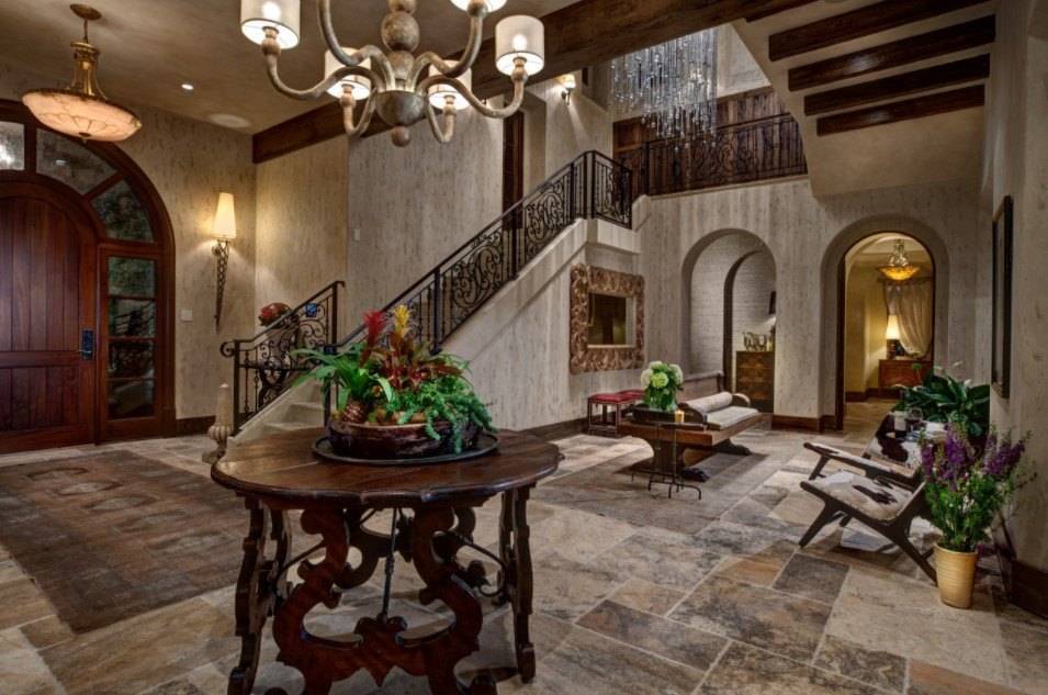 Когда коридор выступает в роли транзитной зоны между улицей и жилым пространством, можно немного потратиться и приобрести фактурные составы. Венецианская декоративная штукатурка в интерьере прихожей будет смотреться уместно только в традиционных классических интерьерах.