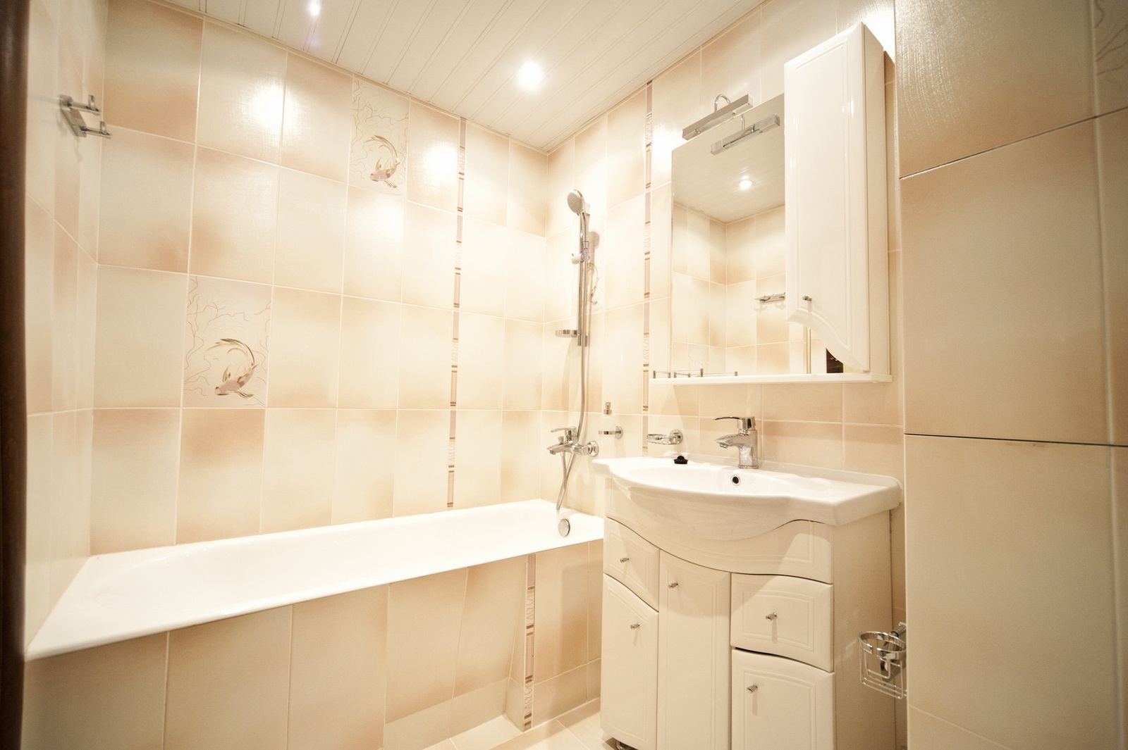 ПВХ панели для ванной под плитку внешне практически не отличаются от покрытия из керамической плитки