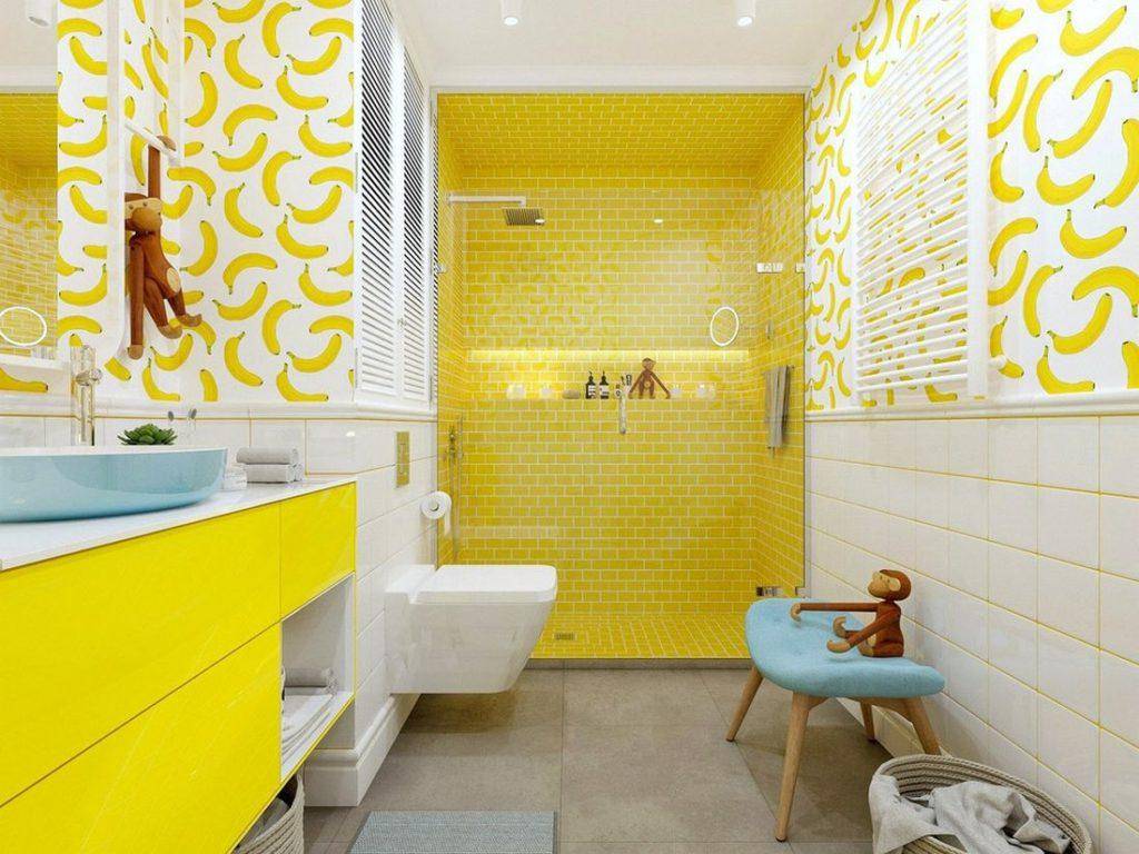Желтый цвет создает яркий, жизнеутверждающий интерьер. Желтая плитка часто используется дизайнерами для создания отделки в стиле поп-арт.