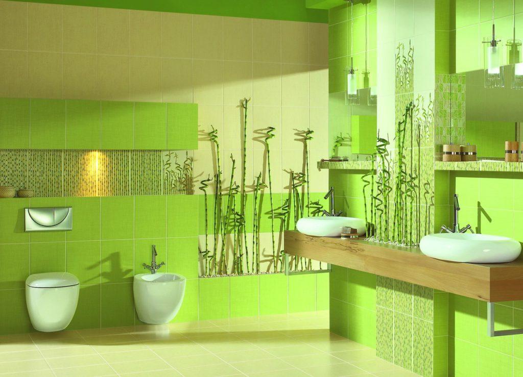 Салатовый цвет настраивает на позитив, но однотонные зеленые стены будут зрительно «съедать» пространство санузла. Дизайнеры рекомендуют сочетать салатовый с белым, чтобы добавить воздуха в интерьер и подчеркнуть свежесть зелени.