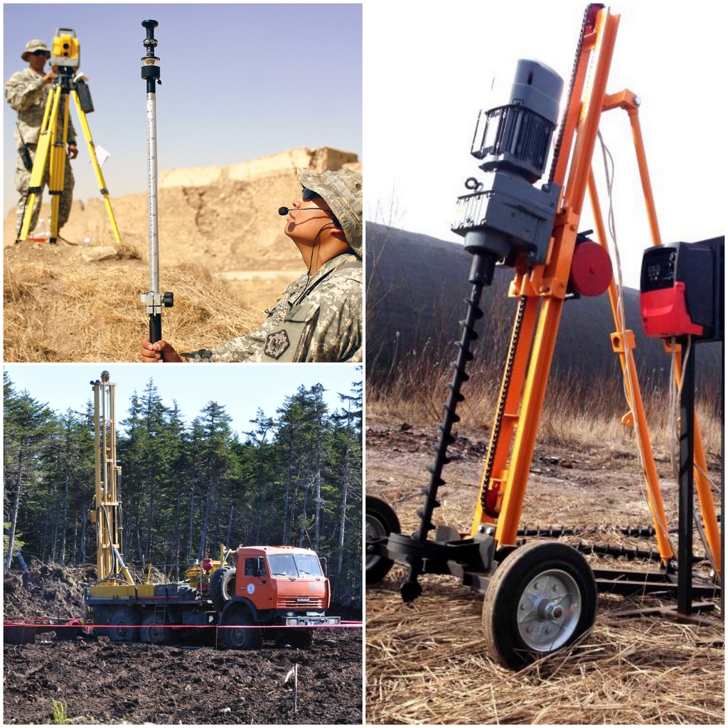 Геологические изыскания — это когда местные грунты или почва исследуется на предмет глубины нахождения различных пород грунта, песка, суглинка и воды.
