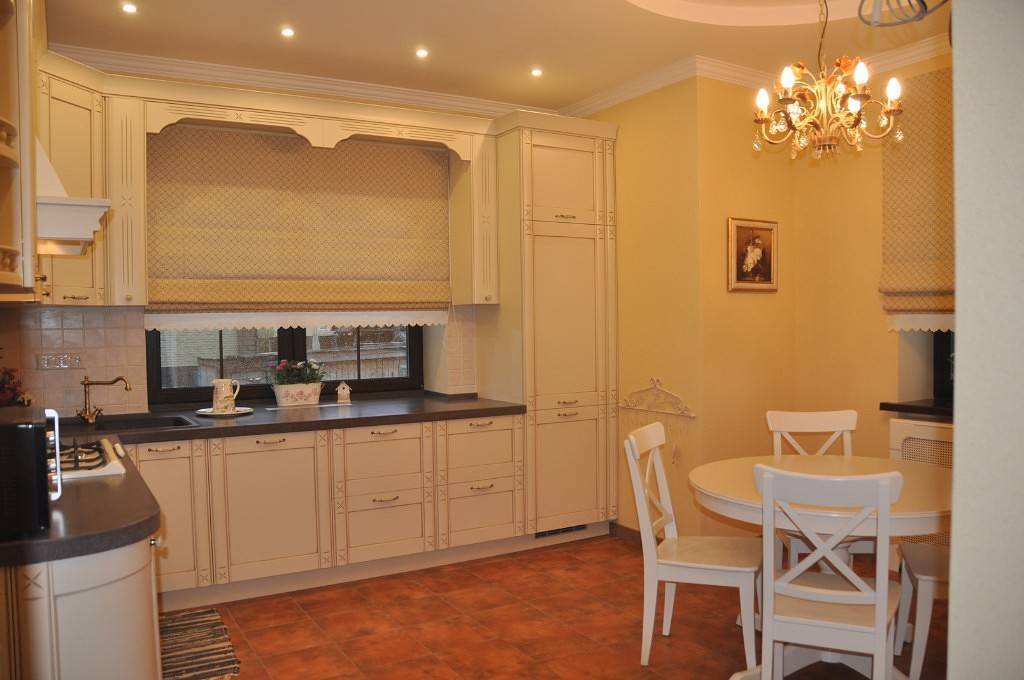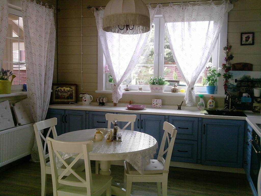 Если кухня оформлена в стиле прованс либо кантри, которые всегда проявляют себя в натуралистичных цветах мебели, круглый стол под этот стиль стоит выбрать соответствующий. Идеальным вариантом в этом случае будет деревянный стол, выполненный из светло-желтых либо светло-коричневых ценных пород деревьев.
