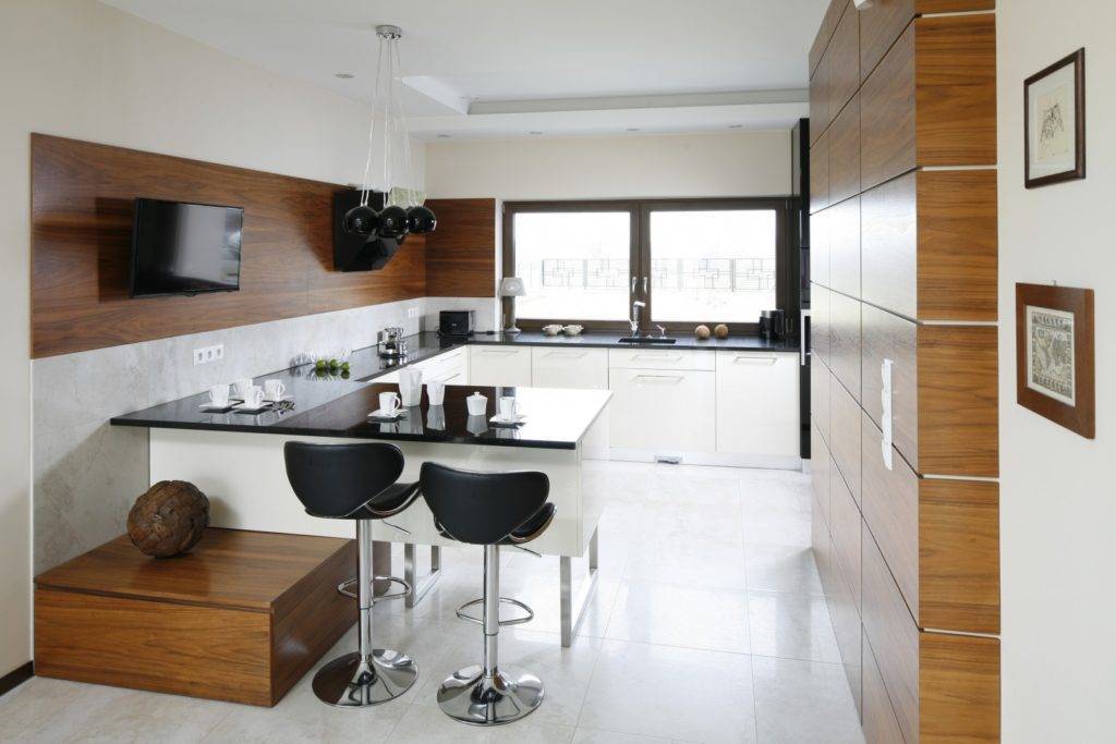 Если кухня выполнена в стиле минимализма, модерна либо же хай-тека, стоит подобрать стол, цвет которого будет находить отражение в мебели. К примеру, если установлена черно-белая кухня, стоит выбрать черный или белый стол.