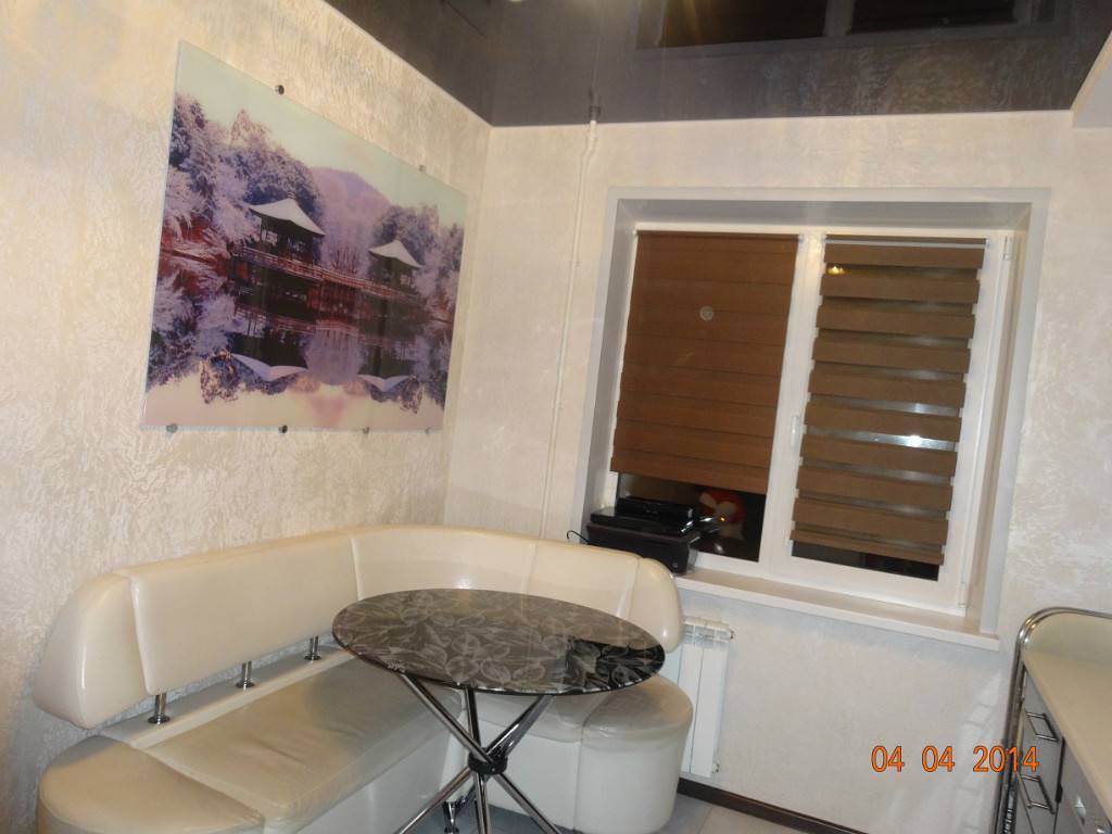 Интересным вариантом является использование стеклянного кухонного обеденного стола. Такое изделие в маленькой кухне не будет бросаться в глаза, визуально сливаясь с остальным интерьером. Сразу возникает впечатление, что кухня достаточно большая и просторная.