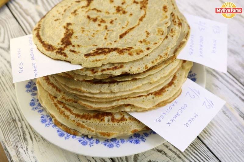 Резюме: отсутствие пшеничной муки не повлияло на сохранение целостности блина при переворачивании