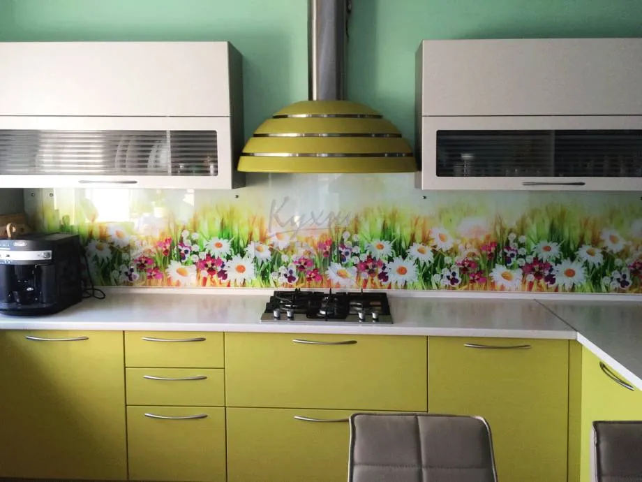 Стеклянная стеновая панель с фотопечатью для кухни благодаря защитному слою на протяжении длительного времени будет сохранять свой презентабельный вид. Такой фартук придаст интерьеру современной кухни уникальности, роскоши, наполнит ее светом и создаст отличное настроение.
