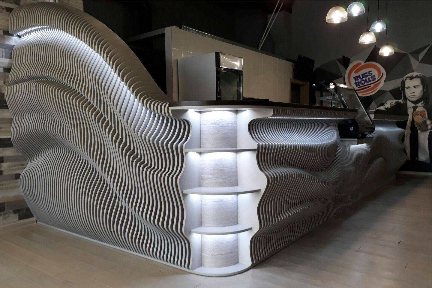 Внешняя оригинальность параметрической мебели активно используется дизайнерами для создания визуальных эффектов при оформлении помещений. Любой предмет, будь то кресло или светильник, стол или барная стойка, точно соответствует концептуальному выбору. Простота реализации идей дает огромные возможности для творческой фантазии