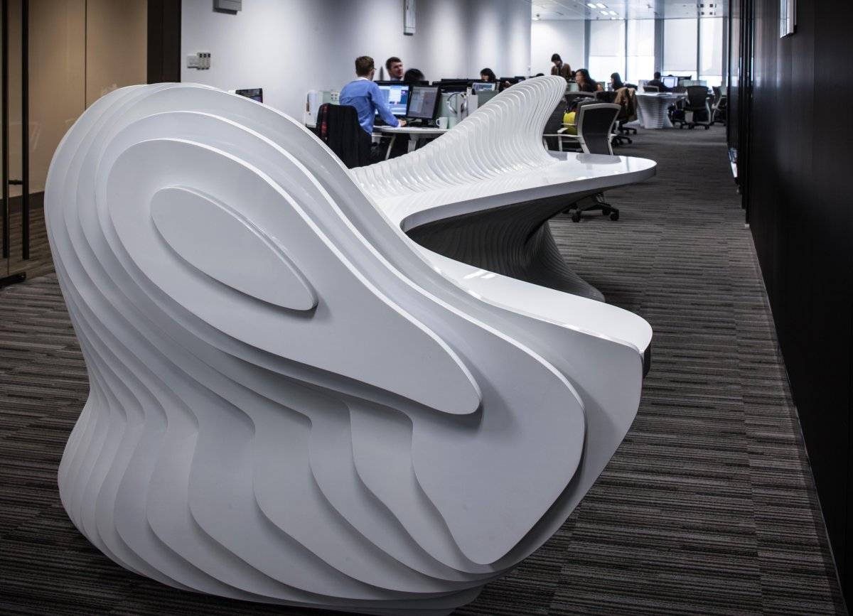 Каждый слой при этом имеет строго заданную форму. А все слои вместе формируют трехмерную фигуру, имеющую необычные «текучие» очертания. Несмотря на экзотичный и даже авангардный внешний вид такая мебель очень функциональна. Ведь создание комфортных условий для пользователя – один из главных приоритетов при создании подобных объектов.