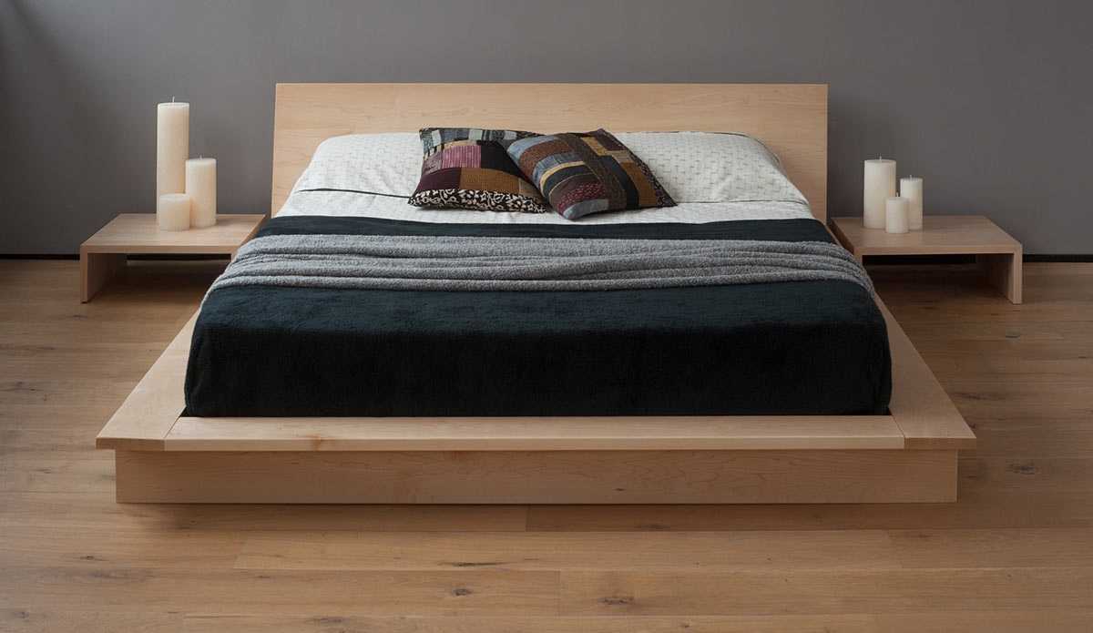 Мебель из массива дерева в зависимости от декоративной обработки может прекрасно вписаться в любой интерьер. Изделия с деревянным основанием легче кроватей из мдф или лдсп. Это является преимуществом для парящей мебели, так как меньший вес снижает нагрузку на крепление и опоры.