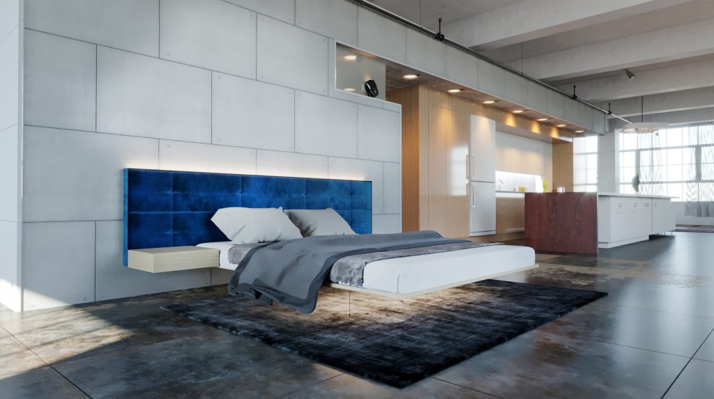 Парящий эффект лучше всего смотрится в стиле лофт, хай-тек, минимализм. Столь оригинальные кровати отлично дополняют не менее необычные детали в интерьере. Главное правильно подобрать цвет и отделку. С течением времени дизайнеры смогли использовать левитирующую мебель даже в классических стилях. Восточные, средиземноморский, скандинавский интерьер также не стали исключением.
