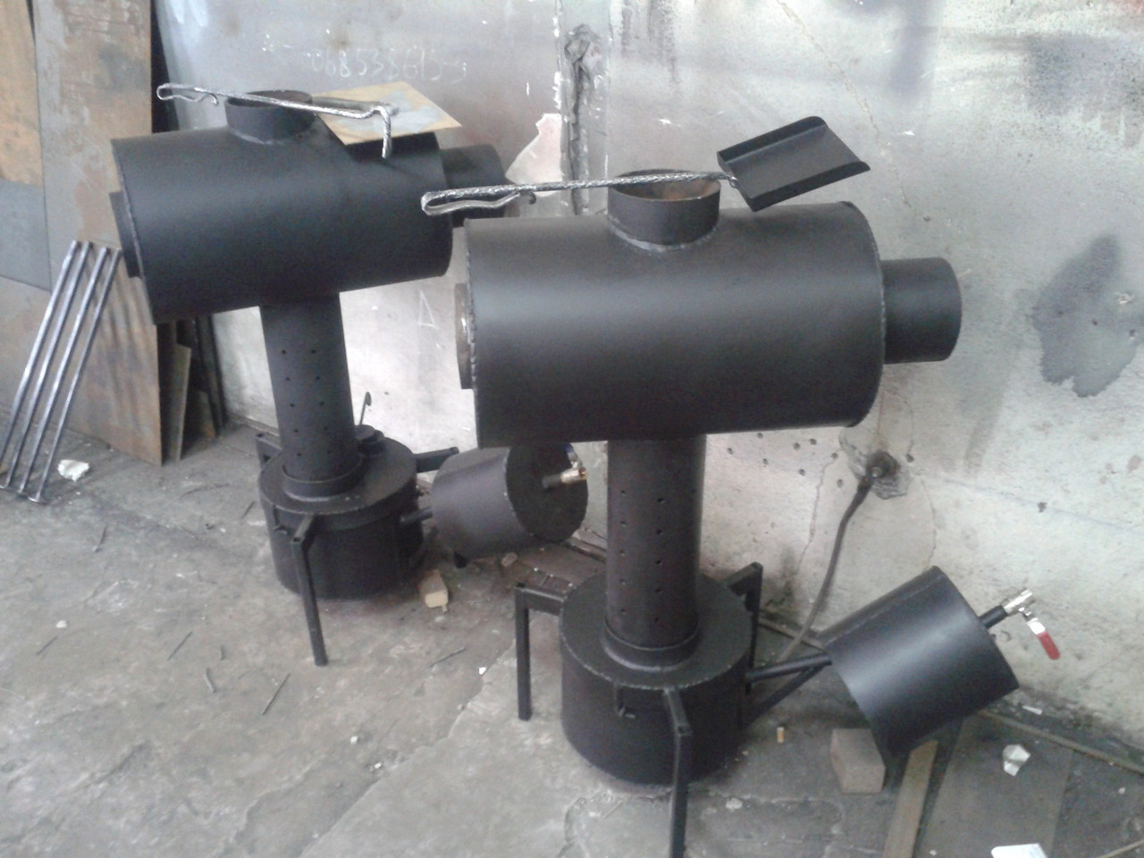 - Двухходовая печь на дровах и угле, сваренная из листового металла.