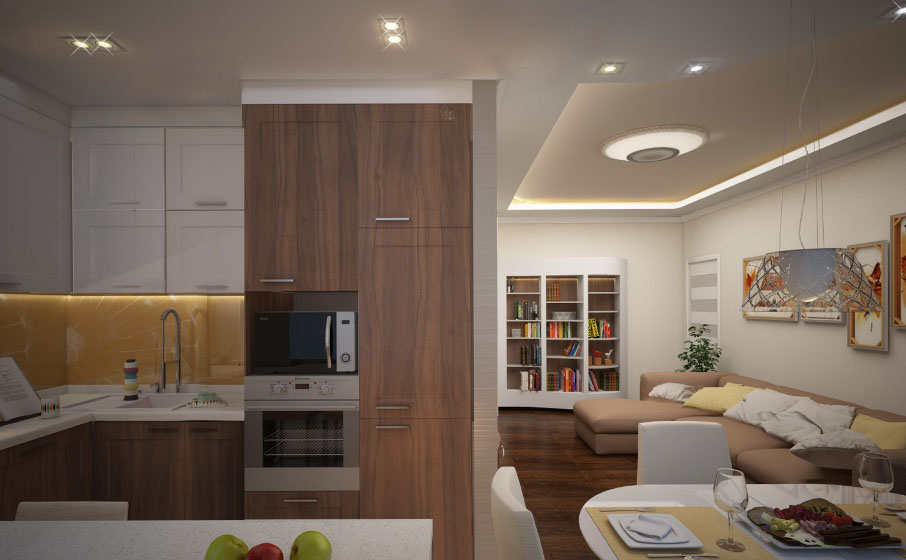 Многие квартиры, находящиеся в собственности граждан нашей страны, не соответствуют современным требованиям пользователей своими эксплуатационными и функциональными характеристиками. Чаще всего жильцы недовольны нежилыми помещениями, особенно кухней и ванной. К счастью, большинство проблем и недостатков планировки собственник может устранить за счет организации капитального ремонта. Капремонт позволяет осуществлять самые разные изменения конструктивных и инженерных характеристик объекта во время перепланировки квартиры. Перенос кухни в жилую комнату — далеко не самый распространенный вариант перестройки, однако сегодня некоторые владельцы помещений задумываются о возможности осуществления таких изменений.