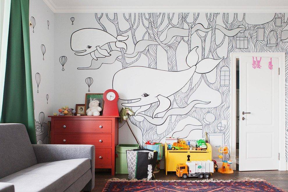 Рисунки на стенах, а также обои стоит использовать с целью расширения пространства. Длинные горизонтальные полосы, как известно, в разы удлинят комнату, а горизонтальные делают ее визуально выше.