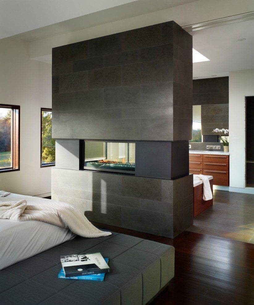 Сегодня дизайнеры предлагают необычный способ зонирования с помощью перегородки, одна из сторон которой будет матовой, а другая зеркальной.