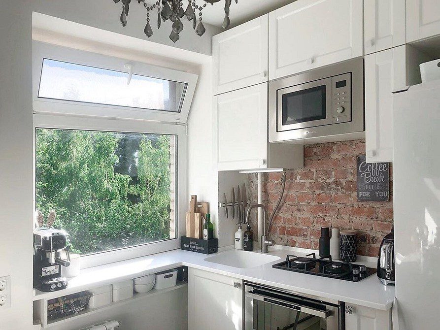 Не забыв утеплить балконную зону, совместить с ней кухонное пространство, при этом допустимо использование подоконного блока в качестве обеденного стола или модной барной стойки.