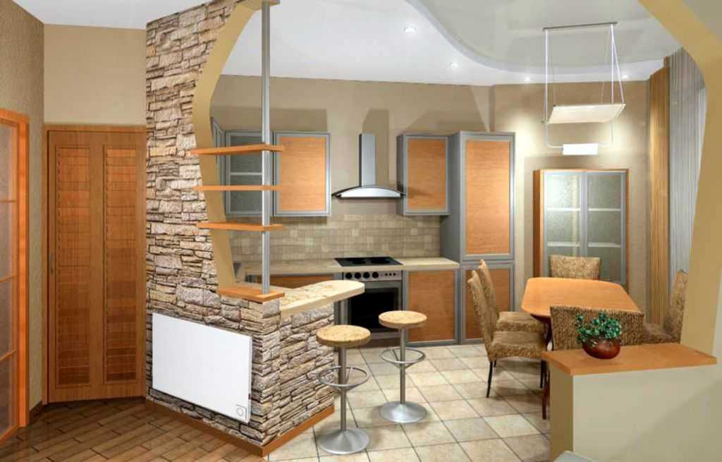 При обустройстве объединенной зоны важно визуально разграничить кухонное и жилое пространства. Это можно сделать при помощи напольных покрытий, барной стойки либо перегородки. Наиболее выгодным вариантом является перепланировка кухни в кухню- гостиную