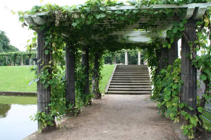 Короткие перголы для вьющихся растений можно размещать при переходе в другую часть сада, в зоне отдыха, над калиткой, дверью в дом, окнами, на затененной стороне участка. Туннели обычно надстраивают над дорожками. Единственное место, где строение может выглядеть негармонично — середина цветочного газона. Оно будет затмевать его и выглядеть избыточным.