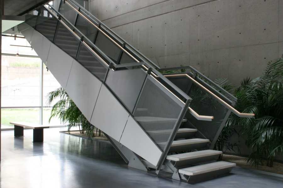 Преимущества металлических конструкций — легкий внешний вид и небольшой вес. Обычно они изготавливаются из нержавеющей стали и могут быть любой формы. Они лучше всего подходят для интерьеров, оформленных в индустриальном стиле или стиле лофт. Сталь хорошо сочетается со ступенями из нержавеющей стали, ламинированного дерева или стекла. Такие лестницы устанавливают в уже готовом доме.