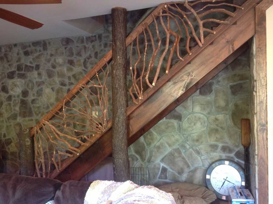 Если хочется подчеркнуть индивидуальность и необычность интерьера, прибегают к созданию поручней нетрадиционных форм из подручных материалов: