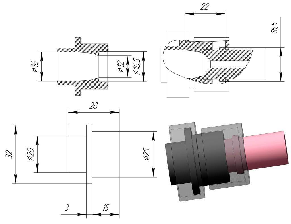 Схема и размеры переходника для установки китайских сопел на фирменный пескоструйный пистолет