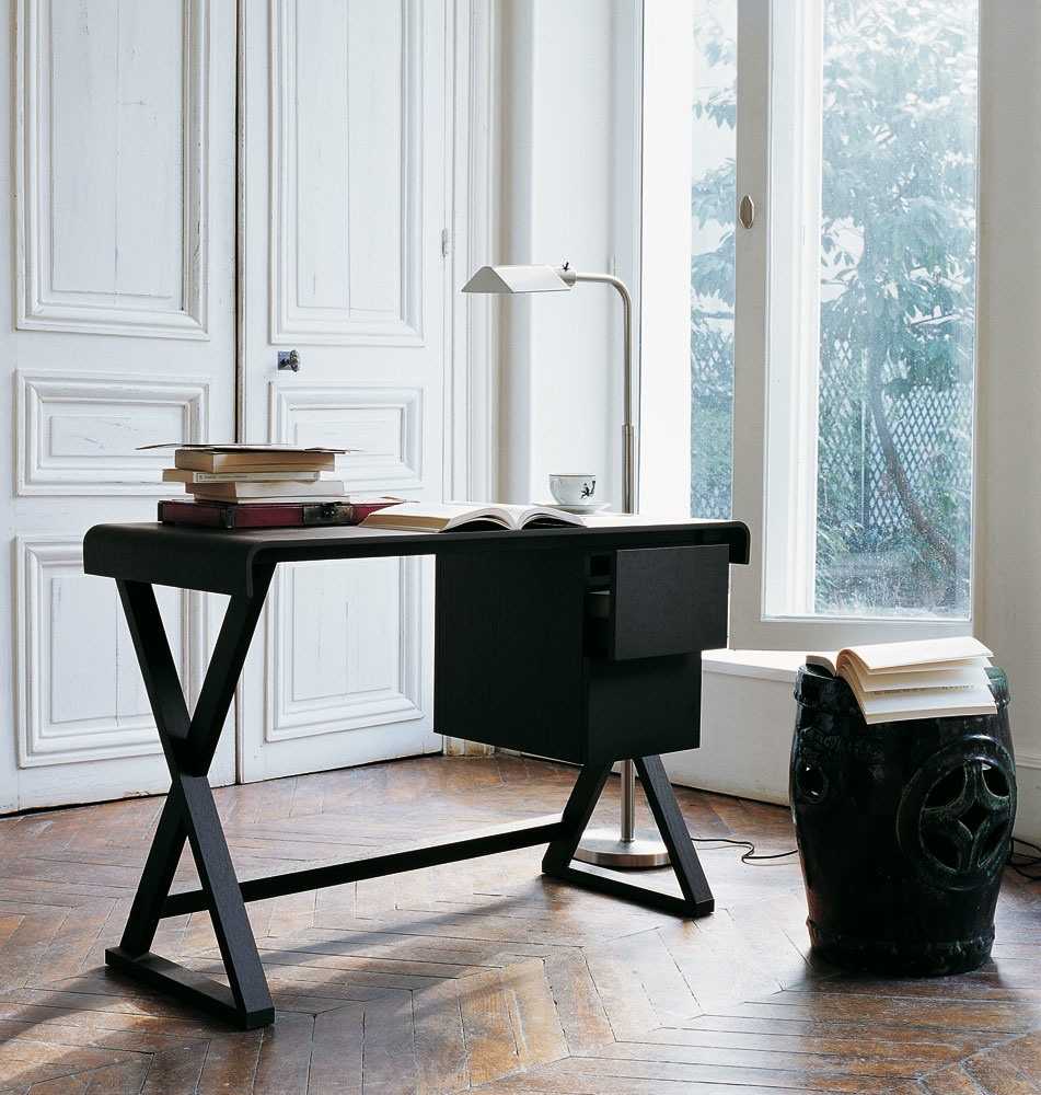 Длинная конструкция может стоять возле стены или напротив окна. Есть два вида таких столов: с двумя одинаковыми столешницами и с одной-единственной. Желательно поставить её напротив окна, но если это невозможно, то её ставят к стене.