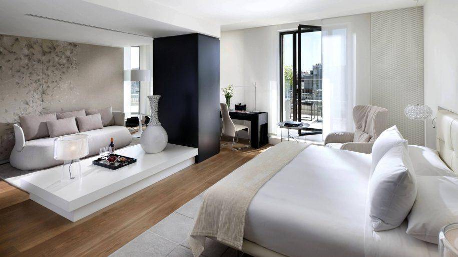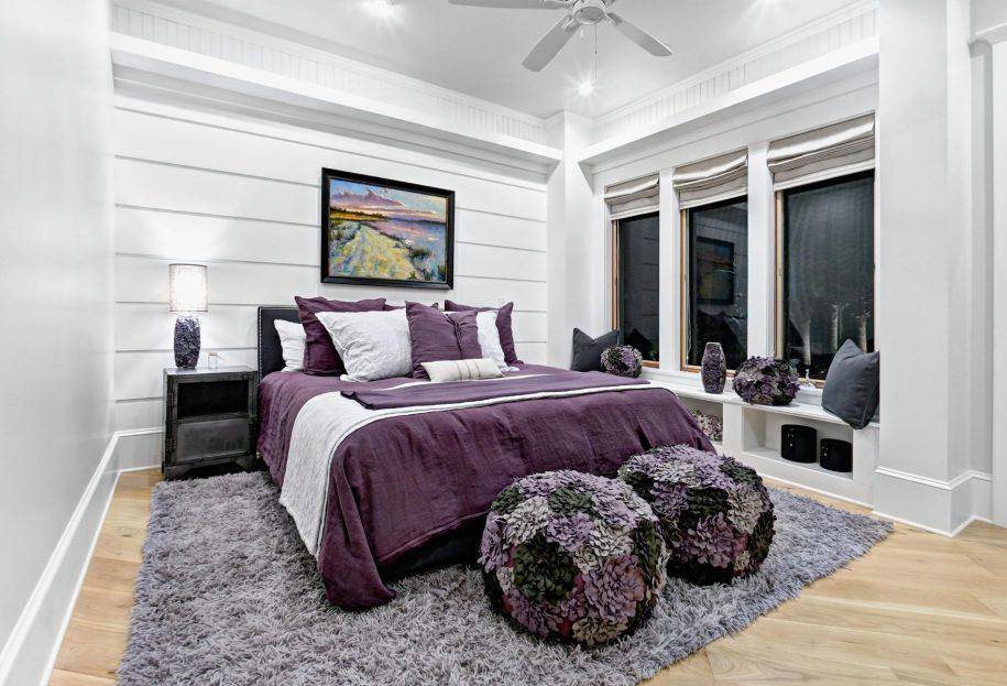 Акцент на детали можно выполнить в виде ярких пятен. Для этого можно подобрать красивые фотообои, необычные статуэтки, прикроватные лампы или текстильное оформление в контрастном тоне.