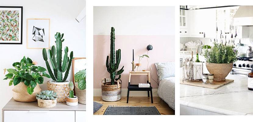 Если растения уже придают естественность нашему дому, таким образом мы можем усилить этот эффект. Мы можем использовать большие корзины для украшения больших растений в гостиной, холле или спальне, а также маленькие кактусы и суккуленты на полках и комодах.