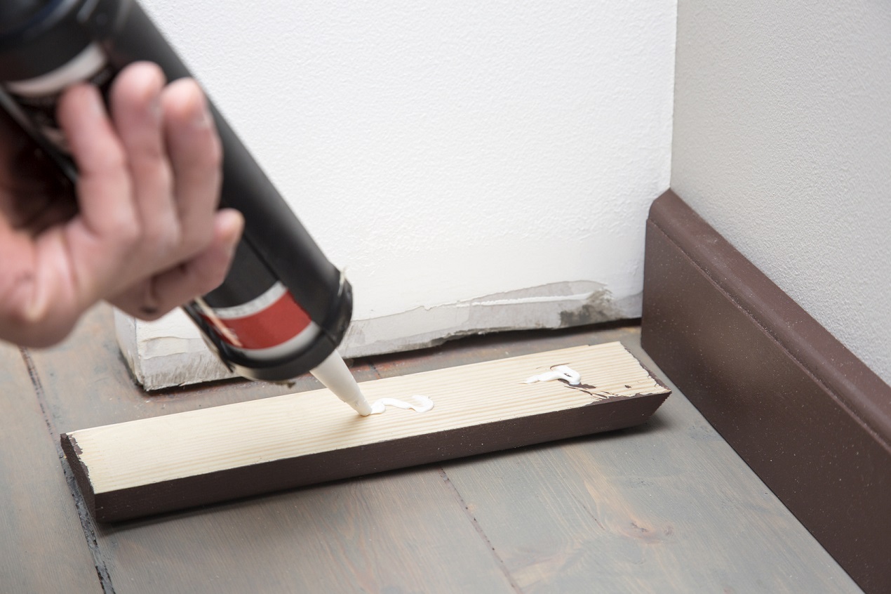 Самый простой вариант крепления плинтусов МДФ – это использование клея или жидких гвоздей.
