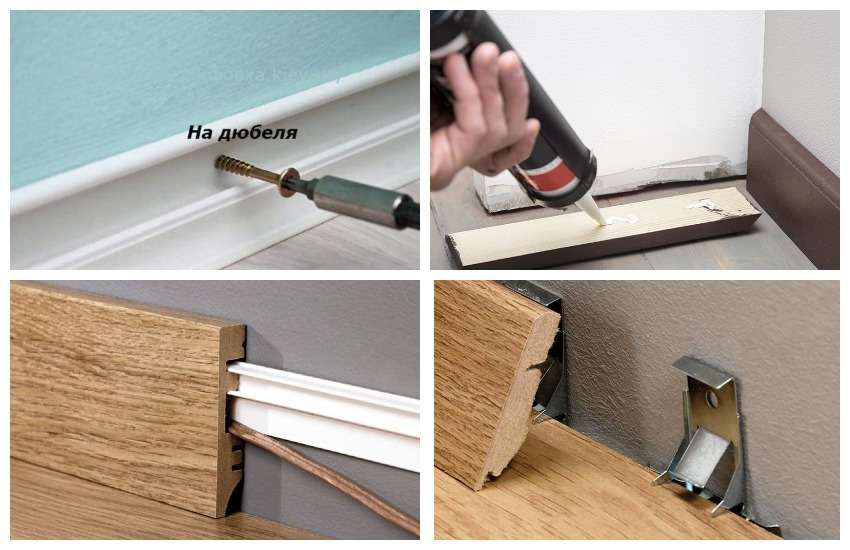Установку плинтусов выполняют различными методами, которые выбираются, исходя из конкретной ситуации.