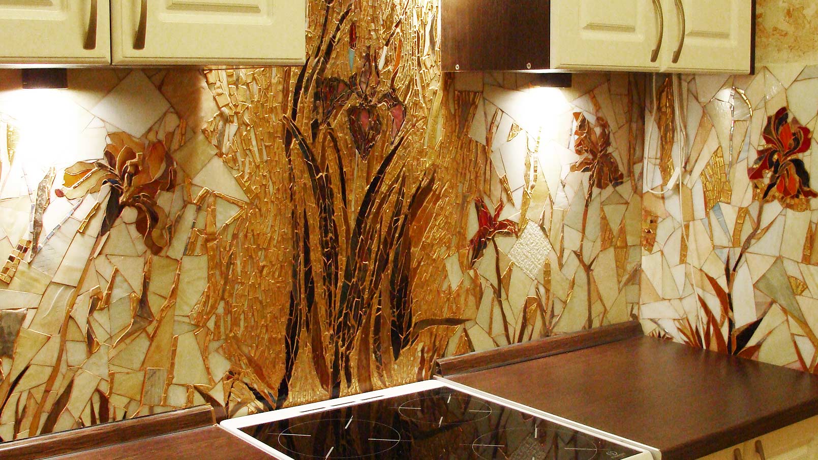 Мозаичное панно создает динамичный рисунок, призванный оживить дизайн кухни. При этом дизайнеры не рекомендуют использовать больше четырех цветов в комбинации. Эти цвета должны быть из одной цветовой гаммы. Контрастные сочетания будут резать глаз и раздражать.