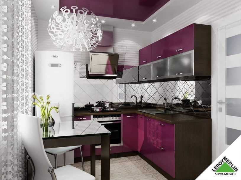 Ещё одна разновидность стеклянной мозаики – это зеркальная. Она выглядит очень эффектно в современных стилях, таких как хай-тек, ар-деко. Свойство зеркал расширять площади активно используется в кухонных помещениях малой площади.