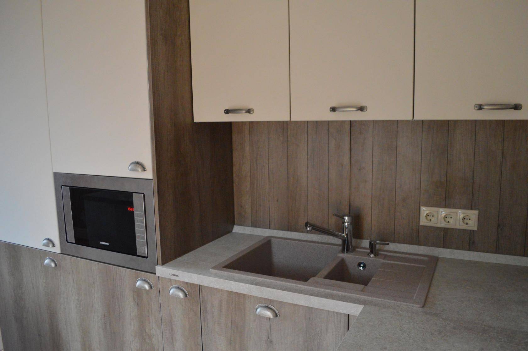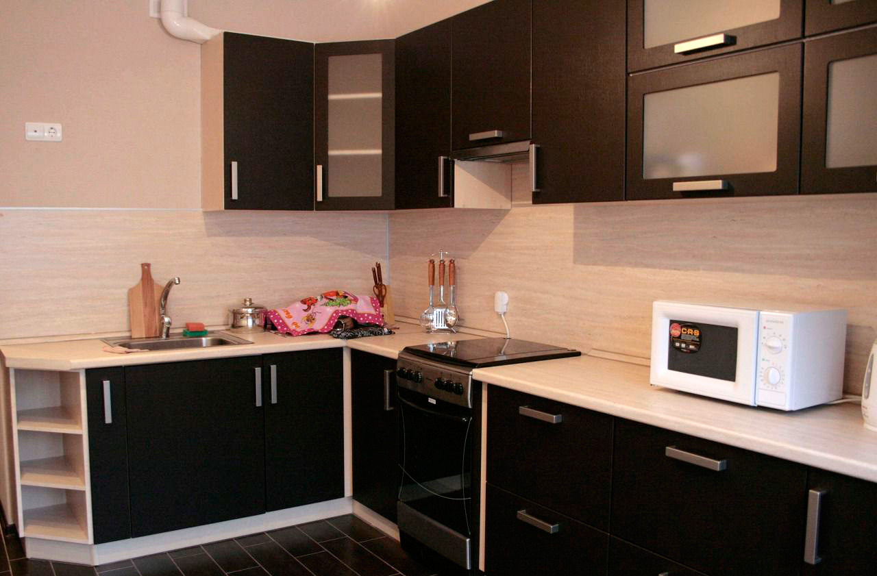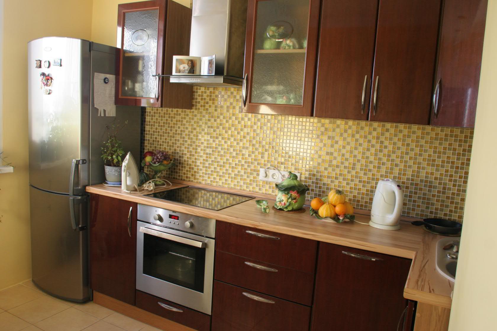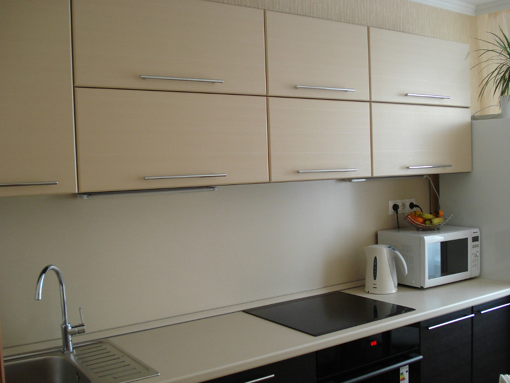- такой же эффект, что и белый, обеспечивает бежевый цвет. Он отлично смотрится на фоне дерева кухонного гарнитура, создавая зрительный эффект большего простора;