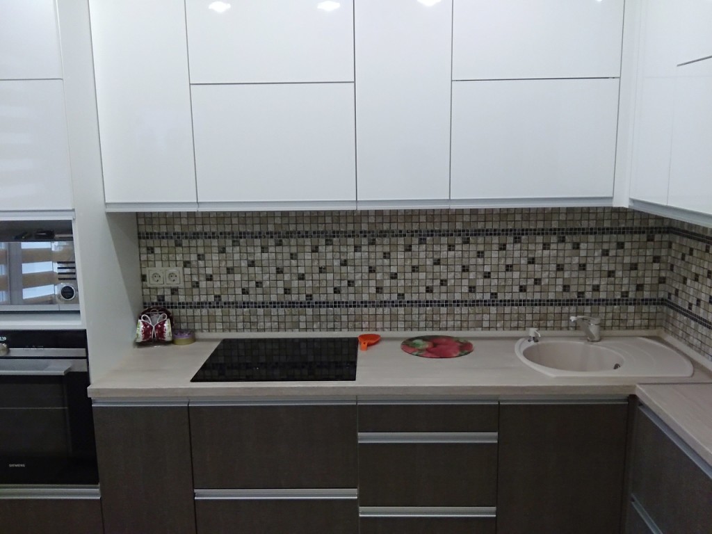 - выбирать облицовочный материал нужно с тем расчетом, чтобы его оформление и цветовая гамма были увязаны с кухонным гарнитуром и столешницей. Здесь можно предложить несколько путей: создать контраст или добиться гармонии в оформлении пространства за счет оттенения кафелем, который должен отличаться не более, чем на 2 тона от прочих элементов;